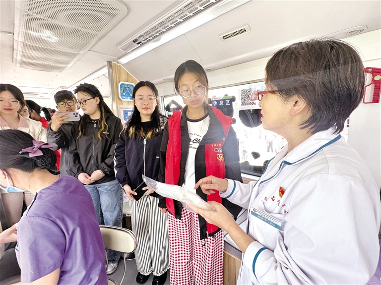 一些原本对献血存在疑虑的志愿者听完医师的讲解后,也勇敢加入献血队伍中,刘亚奇就是其中一位。他坦言“有点紧张,但更多的是期待,想为社会做一点贡献”。简短的话语,传递着满满正能量。