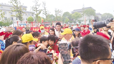 在赵俊华的“送亲队伍”中,还有包钢(集团)公司的工作人员,他们代表“娘家人”参加了认亲仪式,并向赵俊华的亲人赠送了包钢的历史画册和文创产品。千里相送,既包含着包钢对赵俊华家两代职工的感谢与关怀,也将“齐心协力建包钢”“三千孤儿入内蒙”这些火热的时代记忆留给高邮的家乡人民。