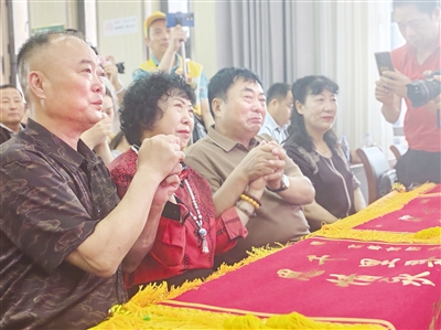 在赵俊华的认亲仪式现场,有十几名穿着军绿色半袖的老人,他们是王其海的战友。他们得知王其海找到失散多年的姐姐,便自发组织前来。在认亲现场,老兵代表向赵俊华献花,欢迎姐姐回家。虽是戎装已褪,年近花甲,但老兵们依旧精神抖擞,腰杆笔直。