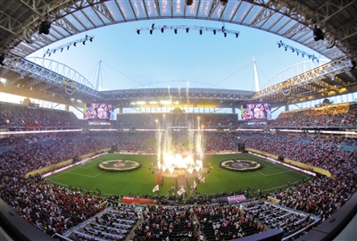 开幕式上,“团结”成为重要主题,32名代表参赛俱乐部的年轻球员手持俱乐部徽章嵌入国际足联(FIFA)的英文字母中,成为其“足球团结世界”口号的最佳注脚。