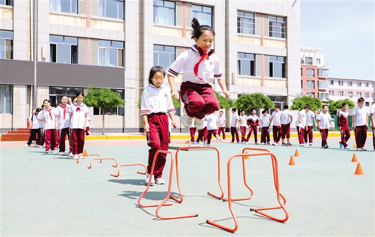 6月16日,呼和浩特市回民区钢铁路第二小学的操场上热闹非凡,足球小将们进行带球突破训练,舞龙队的学生们手持彩龙翻腾起舞……这是该校打造的特色体育课堂中日常的一幕。近年来,该校积极探索体教融合新模式,构建了“基础+特色”的体育课程体系。在保证常规体育教学的同时,重点开发了舞龙、足球、武术、体操等特色项目,让传统文化与现代体育在校园里碰撞出别样火花。