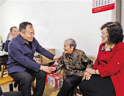 见到女儿时,老人紧紧抱住她。梁引梅拿出驼奶粉、粽子、羊毛衫等礼物,丁正华让她“别花钱”,脸上却洋溢着幸福的笑容。