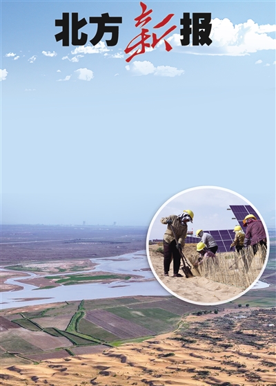 6月17日,工人在巴彦淖尔市临河区新华林场光伏治沙项目区铺设沙障。摄影/新华社记者 李云平   在巴彦淖尔市磴口县刘拐沙头,黄河岸线流沙治理工程锁住黄沙(2025年6月5日摄)。 摄影/新华社记者 连 振