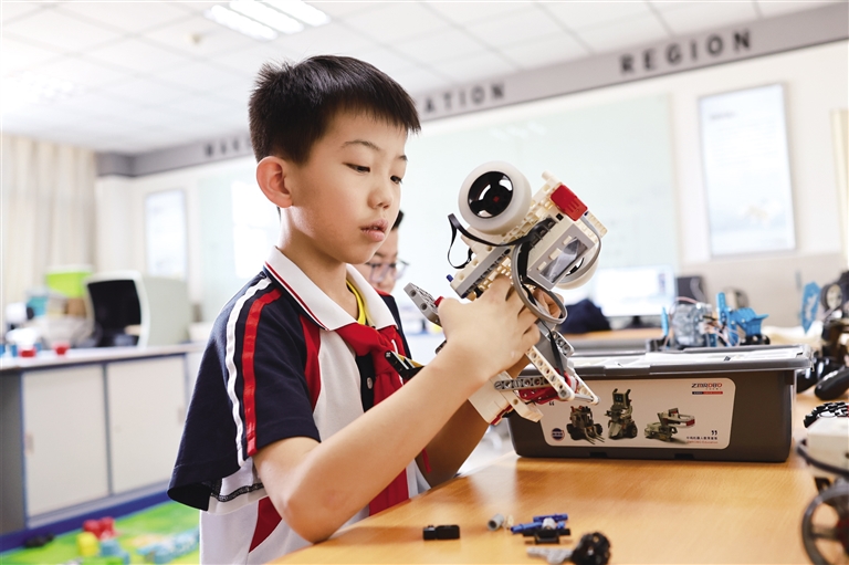 6月18日,呼和浩特市玉泉区石东路小学的学生在老师的指导下学习智能机器人组装、操控等知识。近年来,该校将机器人编程纳入校本课程。学生们通过编写程序、调试机器人,在实践中学习人工智能技术,不仅提升了创新思维,更锻炼了动手能力和团队合作意识。