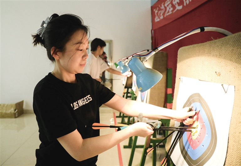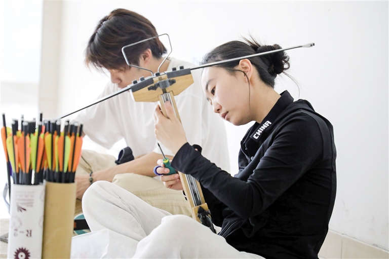 训练场上,教练田冬正细致地为队员们校准弩臂张力、调整瞄准器角度,并耐心讲解不同环境下的射击技巧。队员们每天坚持进行上百次的模拟射击训练,反复打磨每一个动作细节,力求在风速变化、光线明暗差异等复杂条件下,依然能保持稳定的竞技状态。