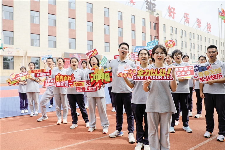 6月24日,即将参加中考的呼和浩特好乐学校学子们为自己加油鼓劲。2025年呼和浩特中考将于6月25~28日举行。今年北方新报将继续携手好乐学校,举办第七次服务中考大型公益活动,届时将在北京四中呼和浩特分校、第六中学、第三十四中学、内蒙古大学附属中学、第三十八中学和第四十三中学设置中考加油站,为考生和陪考家长提供服务,并免费发放饮用水、文具等物品。祝各位考生笔下生花,金榜题名!