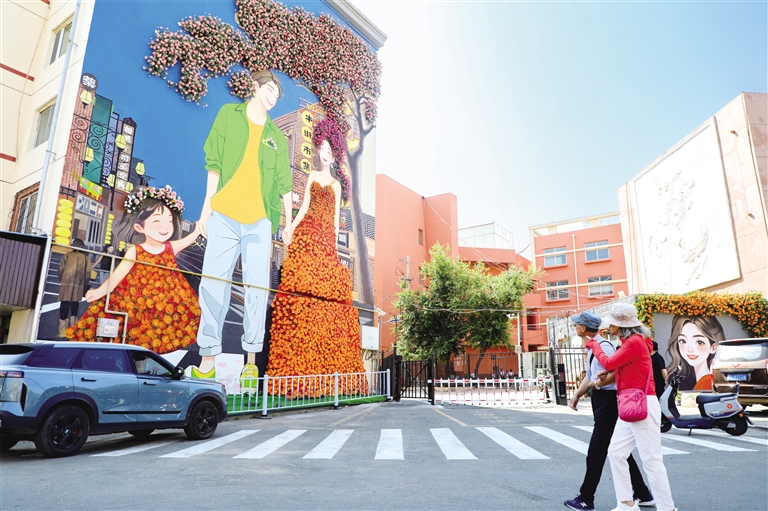 6月23日,呼和浩特市回民区牛街正在改造升级中。记者看到,“味蕾狂欢”“烟火人间”等临街灯牌已经安装完毕,一栋临街居民楼被装饰成花墙,道路地面还涂有粉色花朵。据了解,牛街的改造不仅限于硬件提升,还注重文化与商业结合,以此吸引游客和年轻消费群体。