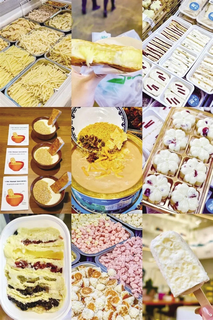在内蒙古,每一滴奶都能被充分利用。内蒙古的奶制品种类繁多,从奶皮子、奶酪、奶嚼口到酸奶,每一款奶制品都在现代化进程中,保留着传统的工艺与风味,成为内蒙古人民代代相传的重要遗产。奶豆腐和奶茶,作为内蒙古特色,不仅是日常饮食的一部分,也深深根植于这片土地的文化和传统中。厚乳系列、奶茶店同款机密原料,自制饮品直接“封神”;酸奶控在这里也会狂喜不已,爆珠酸奶咬开的瞬间快乐炸裂;还有内蒙古版芝士平替——拉丝老酸奶,都散发着来自内蒙古大草原的纯正香气。