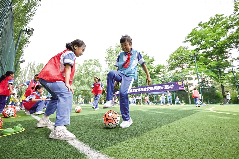 6月25日,内蒙古自治区2025年校园足球课程建设成果展示活动在呼和浩特举行。本次活动由内蒙古自治区教学研究室主办,旨在通过开展校园足球特色学校试点工作成果展示活动,促进校园足球普及发展,培养新时代高素质、专业化、创新型的校园足球体育教师后备人才,搭建校园足球展示与发展平台。本次活动为期两天,有来自内蒙古12个盟市的36所中小学参加。 摄影/新华社记者 连 振