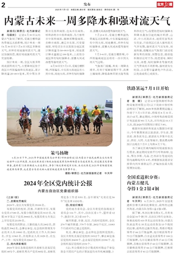 预计未来一周,全区大部多阵雨或雷阵雨天气,主要降雨区位于我区中西部偏南和东部地区,累计降雨量25~49.9毫米,其中鄂尔多斯市东部和南部、包头市东南部、呼和浩特市中部和南部、乌兰察布市中部和南部,锡林郭勒盟南部、赤峰市南部、通辽市东部、兴安盟南部、呼伦贝尔市北部部分地区累计降雨量为50~99.9毫米,局地累计降水量超过100毫米,上述部分地区伴有短时强降水、雷暴大风或冰雹等强对流天气。