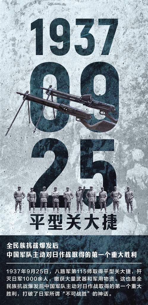 1937年9月25日,八路军第115师取得平型关大捷,歼灭日军1000余人,缴获大量武器和军用物资。这也是全民族抗战爆发后中国军队主动对日作战取得的第一个重大胜利,打破了日军所谓“不可战胜”的神话。 |