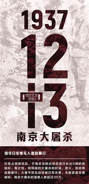 日军占领南京后,于南京及附近地区进行长达6周的有组织、有计划、有预谋的大屠杀和奸淫、放火、抢劫等血腥暴行。大量平民及战俘被日军杀害,无数家庭支离破碎,南京大屠杀的遇难人数超过30万。 |