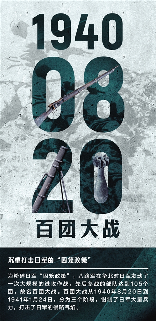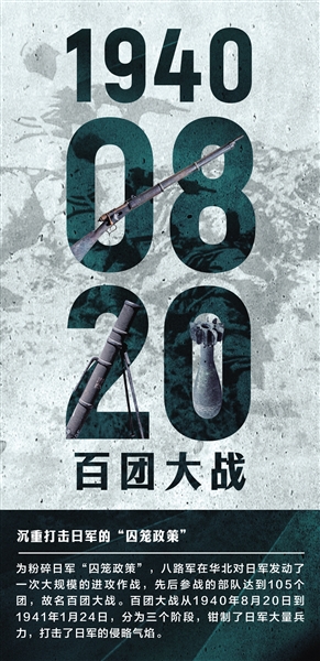 为粉碎日军“囚笼政策”,八路军在华北对日军发动了一次大规模的进攻作战,先后参战的部队达到105个团,故名百团大战。百团大战从1940年8月20日到1941年1月24日,分为三个阶段,钳制了日军大量兵力,打击了日军的侵略气焰。 |