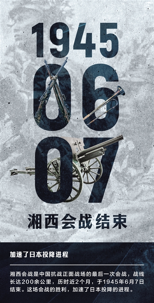 湘西会战是中国抗战正面战场的最后一次会战,战线长达200余公里,历时近2个月,于1945年6月7日结束。这场会战的胜利,加速了日本投降的进程。 |