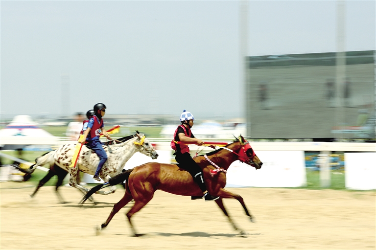 11日的开幕式现场,彩旗飘扬、鼓乐喧天,骏马嘶鸣、蹄声阵阵。骑手们人马合一,风驰电掣,精湛的骑术和骏马的矫健身姿,引来观众阵阵欢呼和掌声。