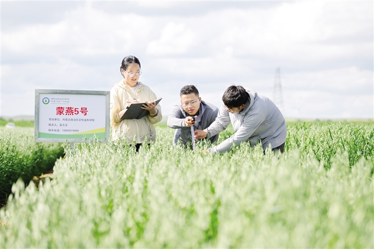 7月15日,内蒙古自治区农牧业科学研究院燕麦育种团队在田间记录燕麦品种性状。该团队在武川燕麦育种基地进行抗倒伏、抗旱、早熟、优质燕麦品种的选育,已选育并通过审定的燕麦品种有蒙燕系列、燕科系列、草莜1号等,目前已经在呼和浩特市、乌兰察布市、锡林郭勒盟等地进行大面积种植,为内蒙古乃至全国燕麦产业的发展助力。