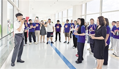 活动当日,中蒙青年身着统一服装,怀揣着好奇与期待走进伊利液态奶全球智造标杆基地。