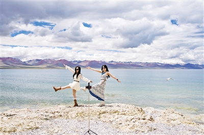 在西藏拉萨市当雄县纳木错扎西岛景区,来自世界各地的游客享受着夏日纳木错清爽的风。纳木错湖面海拔4718米,是世界上面积超过1000平方公里的湖泊中海拔最高的湖泊。2024年,纳木错扎西岛景区接待游客约40万人次。摄影/新华社记者 晋美多吉