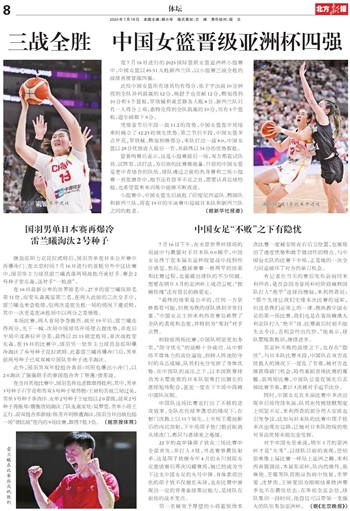 小组赛中,中国女篮先后战胜了印度尼西亚队、韩国队和新西兰队,将在19日的半决赛中迎战日本队和新西兰队之间的胜者。(据新华社报道)