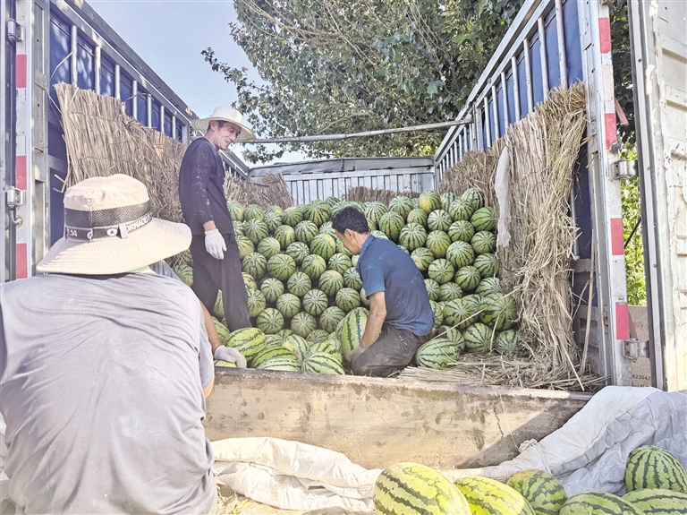 田间地头,饭店的采购人员和店员们挽起裤脚,踩着泥水钻进瓜棚,和瓜农一起摘瓜、装袋、过秤。“这些西瓜甜度高、水分足,正好做果盘、榨汁,既帮了瓜农,客人也能吃到新鲜货,一举两得。”参与收购的另一家饭店负责人笑着说。