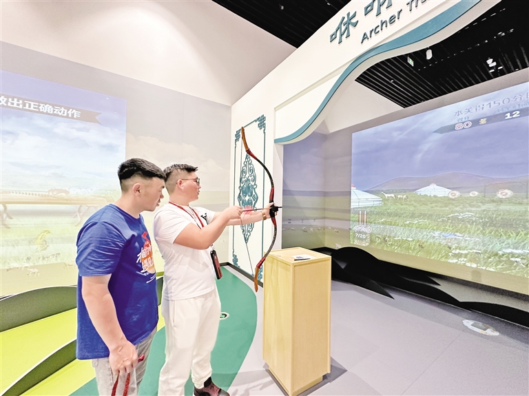 在VR沉浸空间,大家沉浸式体验内蒙古独特的自然景观与历史场景;在文物陈列区,陶器、青铜器、玉器等静静伫立,大家驻足凝视,探寻古人智慧。面对模拟古代生活场景的复原展区,青年们更是好奇满满,围绕先民生活雕塑,猜测当时的生产生活方式,在古今对话中触摸历史温度。