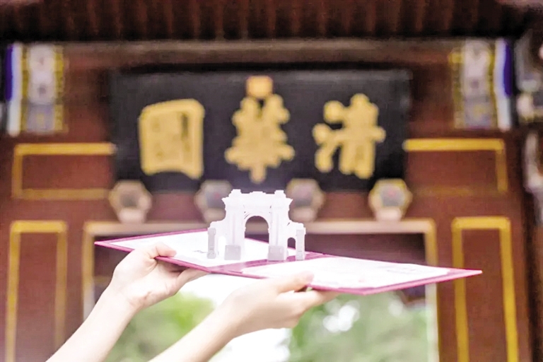 今年清华大学的录取通知书,和去年一样,内有精巧的清华大学二校门立体纸雕模型,采用激光雕刻工艺30多件纸艺部件,上百个拼插结构,手工定制、独一无二。恰如清华校歌所说:“新旧合冶,殊途同归。”