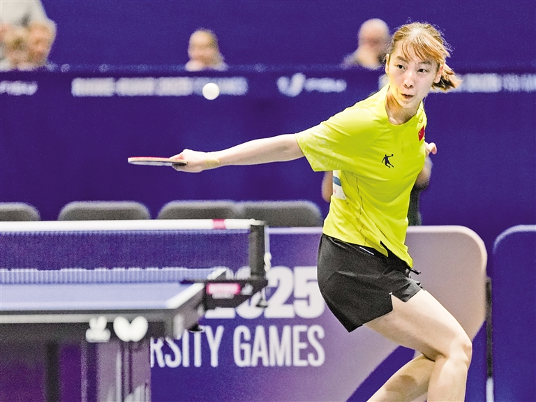 7月20日下午,女团决赛率先进行,中国队以客队(抽签决定)身份排阵,中国队的王晓彤和赵尚都是成都大运会乒乓球女团的冠军成员,削球手杨屹韵作为第二单打出战第一盘。面对日本队第一单打出泽杏佳,杨屹韵毫无机会,很快以0:3输掉首盘。第二盘,中国队第一单打王晓彤以3:1战胜日本队的面田采巳,将大比分扳平。