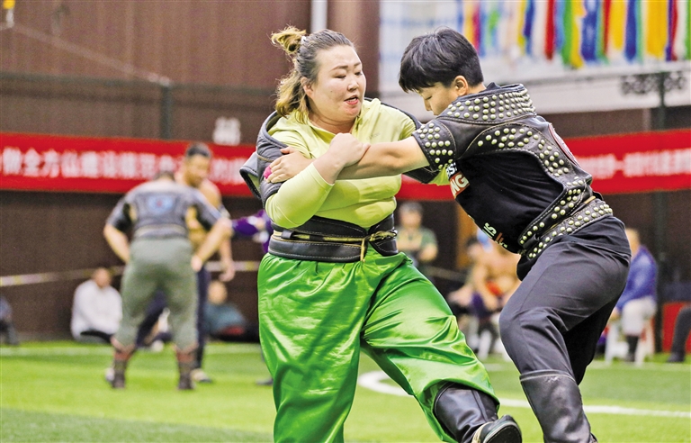 来自呼伦贝尔市代表团的女子搏克名将萨仁格日乐格外引人注目。这位5次征战内蒙古自治区少数民族传统体育运动会的老将,此次带领“00后”新生代队员共同出战。赛后,她告诉记者,搏克运动需要代代传承,看到年轻队员们在赛场上展现出的拼劲,她仿佛看到了当年的自己。各盟市的搏克技艺各具特色,这个平台让大家既能切磋技艺,更能增进友谊。
