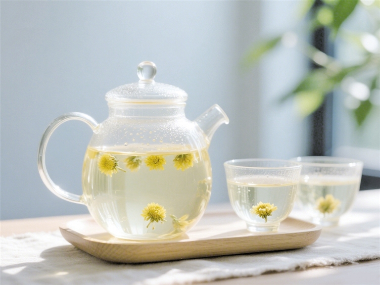 如今再饮菊花茶,总想起旧宅的檐角。外婆把晒干的菊码在竹匾里,阳光斜斜照下来,金瓣上的绒毛都泛着光。她常说“菊活过了夏,人也该熬过躁”。夏饮菊花茶,饮的何止是一季的清苦与回甘?菊在最热时绽放,经风历雨,却把苦涩酿成清凉;人在暑天品茗,历躁归静,终是把浮华泡成平淡。这一盏淡茶里,藏着夏日的静气,也藏着生命的韧性——野菊生在荒处仍开得绚烂,人经了躁乱更该守得住本心。