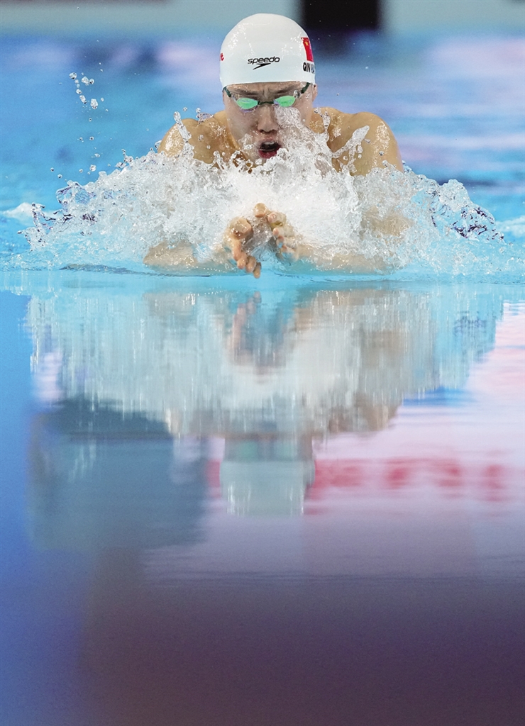 当日男子100米蛙泳决赛中,他后程发力以58秒23的成绩夺得冠军,比巴黎奥运会该项目冠军、意大利选手马丁嫩吉快了0.35秒,后者以58秒58的成绩摘银。