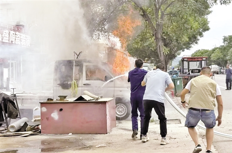 “你赶紧打119!”董旭一边嘱咐妻子,一边将车泊在安全区域,推开车门就冲向了火场。“大家快后退!谁有灭火器?”他嘶吼着,双臂张开疏散人群。冲到货车旁时,火焰已舔舐到车窗,热浪灼得人皮肤发疼。接过路人递来的灭火器,他拔掉保险销便对准火源猛喷,可八九个灭火器接连耗尽,明火仍在反扑,浓烟裹着火星呛得他睁不开眼。