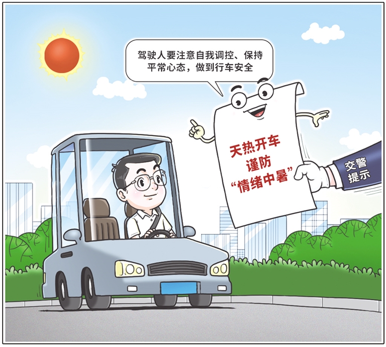 “情绪中暑”最大的问题,就是天气炎热引起的烦躁情绪。越是天热,越要“心静”,如遇堵车或心情不佳,可播放轻柔的音乐进行调节。行车中如感到困倦,应及时在安全地方停车,适当地休息一会儿,头脑清醒后再继续开车。比如中午,容易出现疲劳、打瞌睡,要保持足够的睡眠时间。