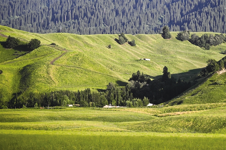 那拉提草原位于伊犁河谷东端的新疆伊犁哈萨克自治州新源县,草原植被丰富、景色多变,有“空中草原”之称。 摄影/新华社记者 辛悦卫
