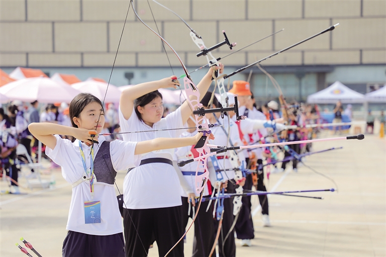 8月5日,2025年全国青少年大众射箭俱乐部联赛内蒙古站在呼和浩特市新华广场开赛。本次赛事是国家体育总局射击射箭运动管理中心首次举办的青少年大众俱乐部联赛,赛事主要面向非专业射箭俱乐部和业余青少年射箭爱好者,比赛设置上海站和内蒙古站两站。内蒙古站比赛将持续至8月8日,吸引了来自全国21支队伍、180名9~14岁的射箭小将参与角逐,按照年龄分为男女甲组、乙组和丙组,设置个人赛、团体赛和混合团体赛。摄影/草原云·北方新报首席记者 牛天甲