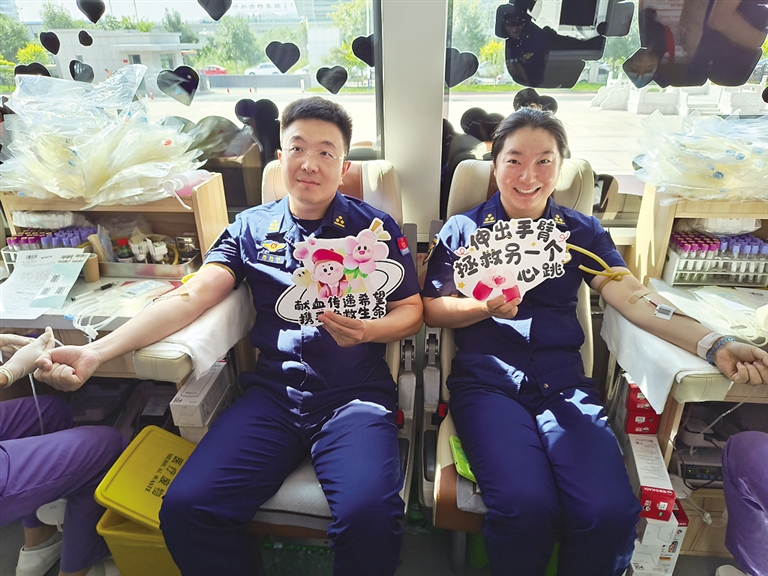 “请放松,握拳、再松拳……”在医护人员引导下,消防员们挽起袖子,露出线条结实的臂膀。采血过程中,医护人员不时递上红糖水和面包,“有没有不舒服”,轻声的询问让车厢内暖意融融。
