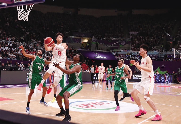 第四节,东道主在赛末阶段发起猛烈反扑,打出一波得分高潮,将分差缩小到5分。关键时刻,中国队依靠胡金秋两罚一中和赵睿突破上篮得分稳住局面,最终以93:88力压沙特队,取得首场比赛胜利。