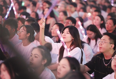 踏入音乐节现场,众多音乐爱好者在草坪上席地而坐,他们跟着旋律挥动着荧光棒,或跟唱,或呐喊,现场氛围极其热烈。