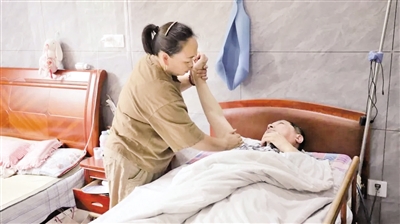从此,陈明贵放弃了工厂的工作,在家专职照料丈夫。不管白天黑夜,每隔两小时,她就得给丈夫翻身、擦身、按摩。头三年,余伯华无法自行进食,全靠鼻饲管。她每天精心熬制营养粥。在她的照料下,丈夫身上干干净净,没有一个褥疮。家中陈设简单却干净明亮,没有异味。