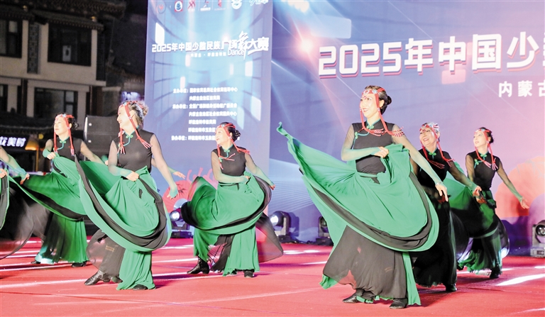作为国家级少数民族广场舞赛事的首站,本届大赛创新性地选址于国家4A级旅游景区大召广场。当夜幕降临,古老的召庙建筑与现代灯光艺术交相辉映,来自北京、天津、上海等地的参赛选手身着蒙古族、回族、朝鲜族等绚丽民族服饰,在璀璨的舞台上尽情绽放。悠扬的马头琴声与欢快的民族旋律此起彼伏,传统与现代交融的舞姿诠释着“各美其美、美美与共”的民族团结新篇章。