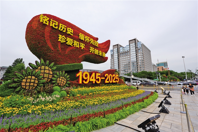 纪念抗战胜利80周年长安街沿线花坛亮相