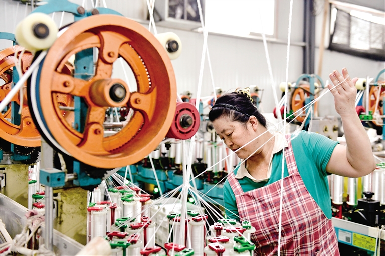 8月27日,村民在“红网工坊”加工安全绳。山东省滨州市惠民县李庄镇是我国重要的绳网产业基地,当地通过村集体自建、企业以租代建、村民入股分红等形式打造“红网工坊”,“织”出乡村振兴新图景。