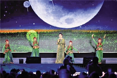 当晚8点,活动在激情豪迈的《乌海迎宾曲》中拉开帷幕,歌曲配合大屏幕上的视频短片全景展示乌海市的湖光山色,并通过民歌大会向远方的客人发出郑重邀请。随后,短调民歌《达那巴拉》、短调民歌《天边的爱恋》、乌珠穆沁长调民歌《温柔的风》、布里亚特民歌《金棘草》等歌曲接连呈现。这些曲目中既有耳熟能详、脍炙人口的传统经典民歌,又有近年深受人民喜欢、广泛传唱的新创民歌,每一首民歌都承载着浓郁的地域风情和深厚的文化底蕴,用艺术形式讲述各民族交往交流交融的动人故事。