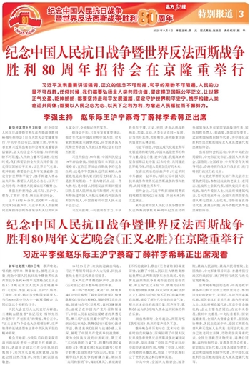 纪念中国人民抗日战争暨世界反法西斯战争 胜利80周年文艺晚会《正义必胜》在京隆重举行