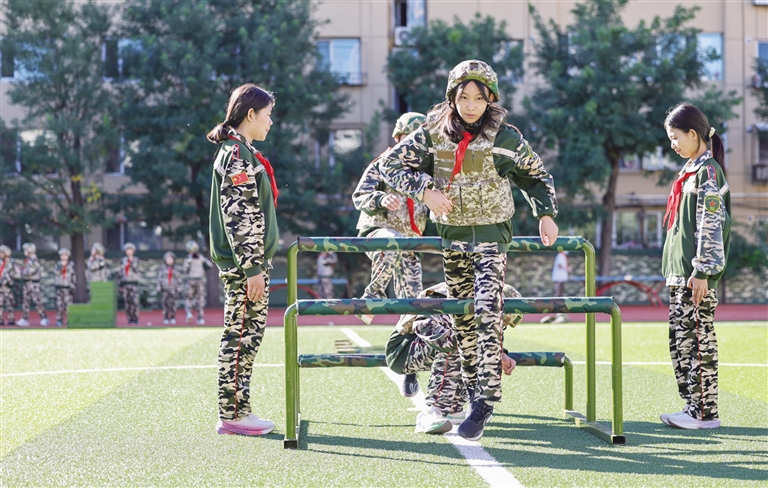 为迎接9月20日第25个全民国防教育日,呼和浩特市玉泉区五塔寺东街小学于9月17日举行“心系国防 强国有我”主题教育活动。学生们通过参与抗战故事讲述、战术演示、涂彩伪装、彩烟模拟、圆木训练以及低姿匍匐、越障、弹药箱搬运等军事技能挑战项目,在沉浸式体验中增强家国情怀与国防安全意识,弘扬爱国主义精神。