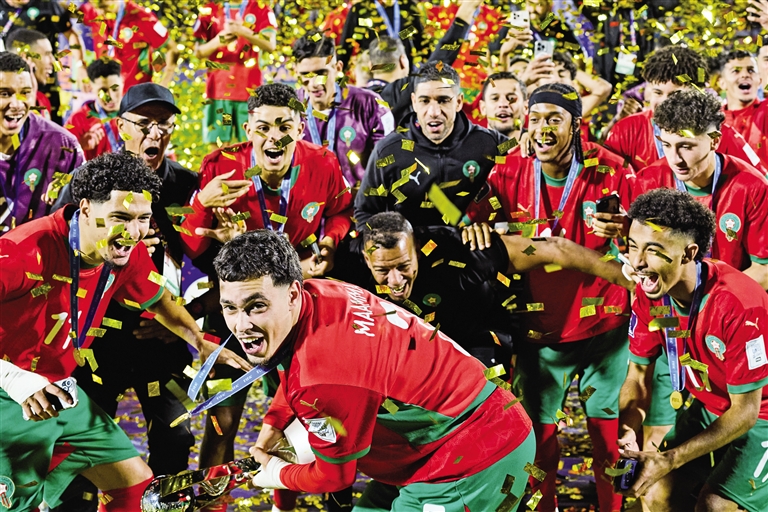 不过,决赛中摩洛哥队的发挥更胜一筹。在葡超法马利康队踢球的前锋扎比里第12分钟打入精彩的直接任意球。第29分钟,扎比里接队友传中,在禁区内一脚劲射“梅开二度”。此后的比赛,摩洛哥队顶住阿根廷队的进攻,将2:0的比分保持到终场结束,收获了这个创造队史的冠军。(据京报体育)