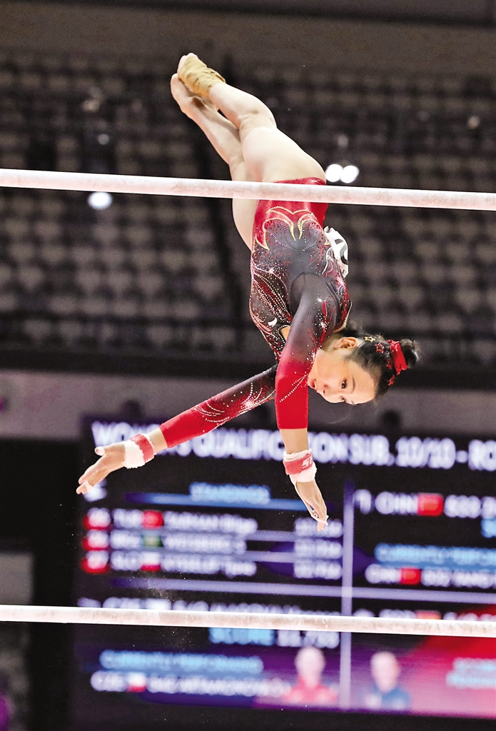 杨凡予微在高低杠伊始有小失误,并未在资格赛展示她的命名动作。她表示,很期待能够在决赛拿出自己最高难度动作,与阿尔及利亚奥运冠军内穆尔同场竞技。
