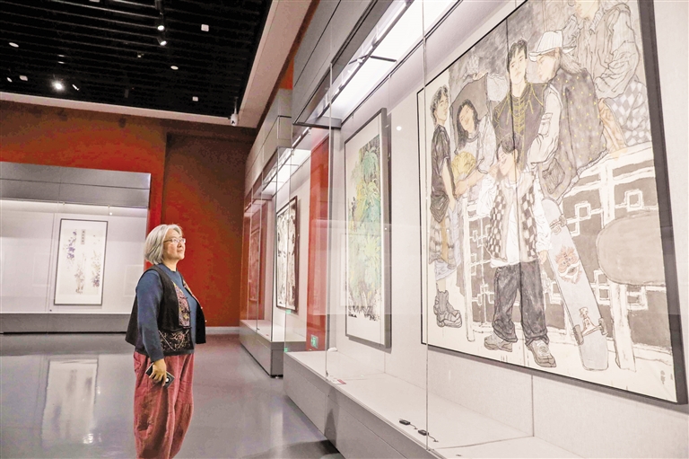 10月28日,呼和浩特市民正在欣赏美术作品。据了解,由内蒙古美术家协会主办的“新象共生 溢彩北疆”首届内蒙古新文艺群体美术作品展于10月25日在内蒙古美术馆开展,120余件作品集中展示了新时代内蒙古新文艺群体美术创作者的艺术探索与多元实践。该展览汇集了一批扎根生活、呼应时代的优秀美术作品。这些作品以丰富的视觉语言和真挚的情感表达,从不同角度反映了内蒙古在现代化进程中的精神风貌与人文情怀。