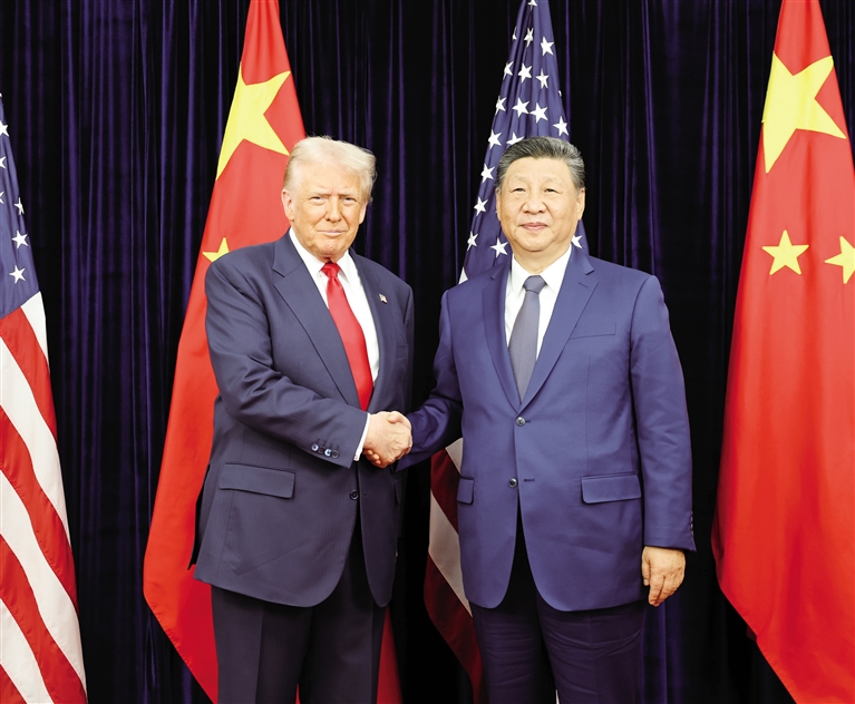 特朗普表示,很荣幸同习近平主席会面。中国是伟大国家,习主席是受人尊敬的伟大领导人,也是我多年的好朋友,我们相处非常愉快。美中关系一直很好,将来会更好,希望中国和美国的未来都更加美好。中国是美国最大的伙伴,两国携手可以在世界上做成很多大事,未来美中合作会取得更大成就。中国将举办2026年亚太经合组织领导人非正式会议,美国将举办二十国集团峰会,乐见双方取得成功。
