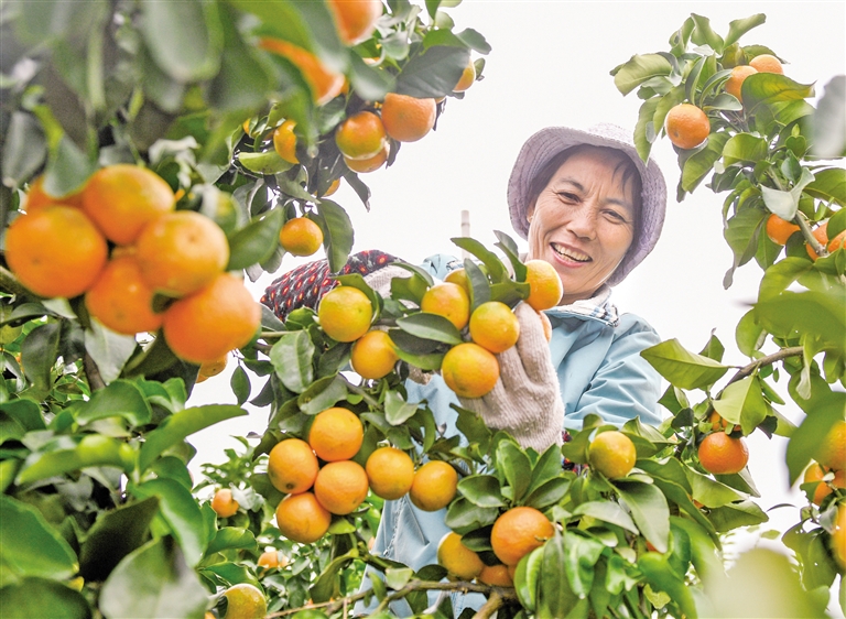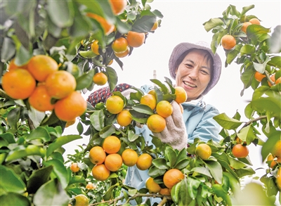 11月2日,湖南省永州市道县蚣坝镇兴桥村村民在采摘沙糖桔。