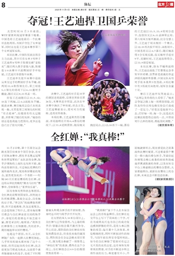 因为身体发育和状态等原因,全红婵此前暂别国家队,回到地方队积极调整,备战全运会,没有她的日子里,“梦之队”的战绩依然辉煌,但不论是教练、队友还是观众,总会觉得缺了些什么。原本每场赛后都会与全红婵亲密互动的陈芋汐,夺冠后的表情也不如之前丰富,接受采访时,她常说:“我和全红婵算得上互相激励,共同进步,期待她能早日回归赛场。”